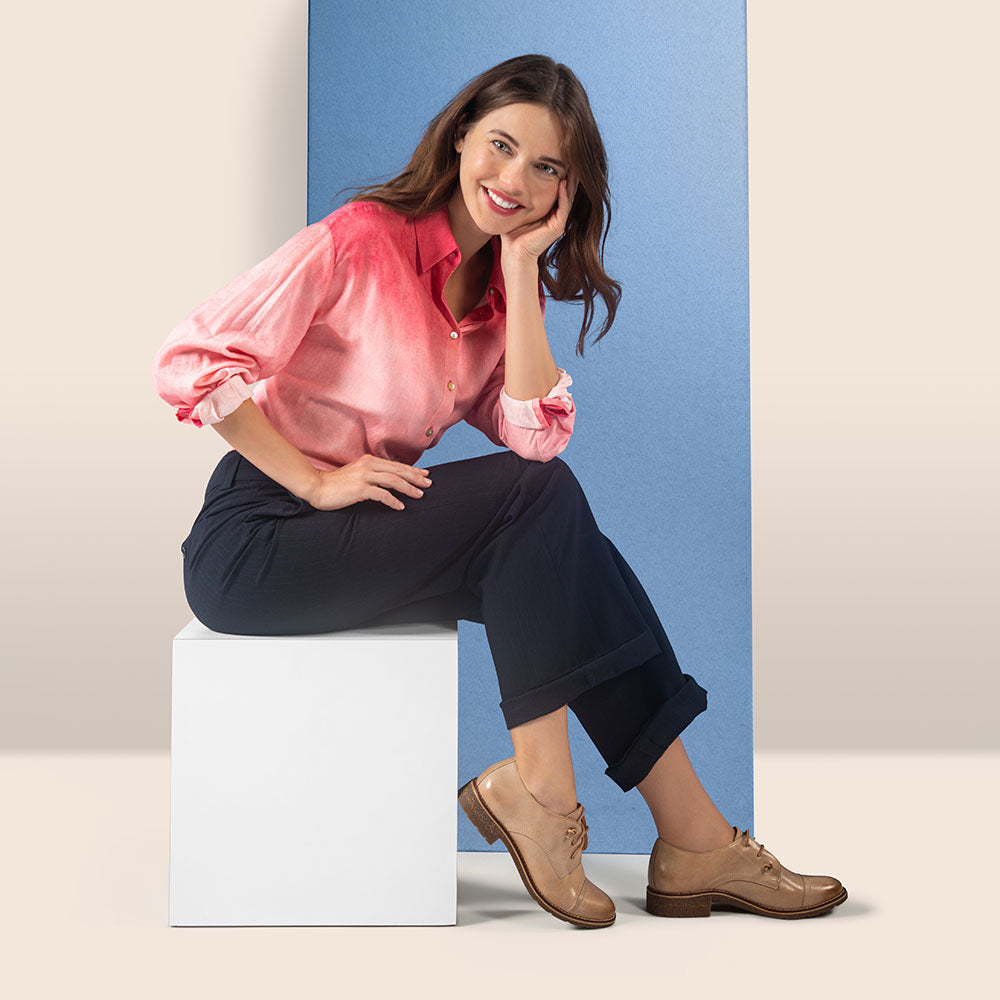 Discover the Gina Oxford, where timeless style meets modern comfort. Effortlessly slip into sophistication with its hidden gore feature. Crafted with a lightweight cork and rubber outsole, these Oxfords ensure durability and stability. Made from premium leather, they boast both quality and elegance. Elevate your footwear collection with the Gina Oxford, the epitome of refined style and comfort. Each Aetrex shoe is anatomically designed based on data and learnings from over 50 million global foot scans. This ensures you’re getting the best fit for your feet and premium support for your body from the ground up.